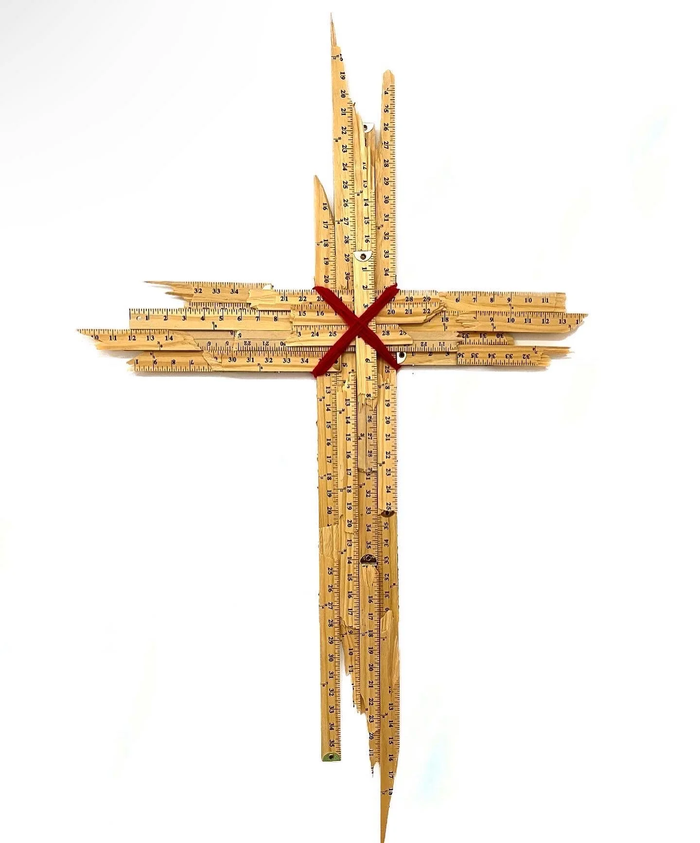 “Spare the Rod, Spoil the Child” Rulers, cardboard, yarn 32” x 43”
